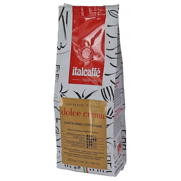 Der Italcaffè Dolce Crema Kaffee in ganzen Bohnen (250g) ist eine Espresso-Bar-Mischung mit einem süßen und cremigen Geschmack sowie einem intensiven, umhüllenden Aroma. Es handelt sich um eine perfekte Kombination aus hochwertigen Arabica- und Robusta-Kaffeebohnen, die sorgfältig dosiert sind, um Ihnen einen echten italienischen Espresso zu bieten.